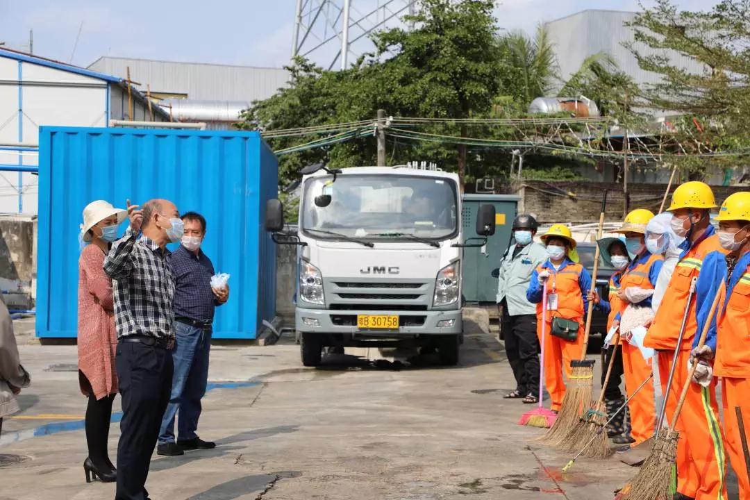 為一線環(huán)衛(wèi)工人送口罩、收集疫情信息;到荔枝溝中轉(zhuǎn)運(yùn)站檢查垃圾處理、消毒情況